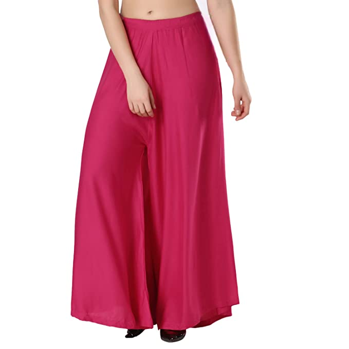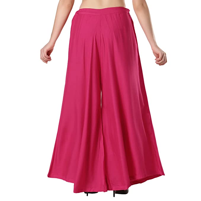 Women Regular Fit Sharara Dark Pink Cotton Blend Trousers
